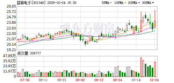 10月26日,蓝箭电子(301348)公布2025年三季报,公司营业收入为5.18亿元,同比上升2.6%;归母净利润亏损2650万元,同比下降28229.5%;扣非归母净利润自去年同期亏损323万元变为亏损2709万元,亏损额进一步扩大;经营现金流净额为1.44亿元,同比增长156.7%;EPS(全面摊薄)为-0.1104元。