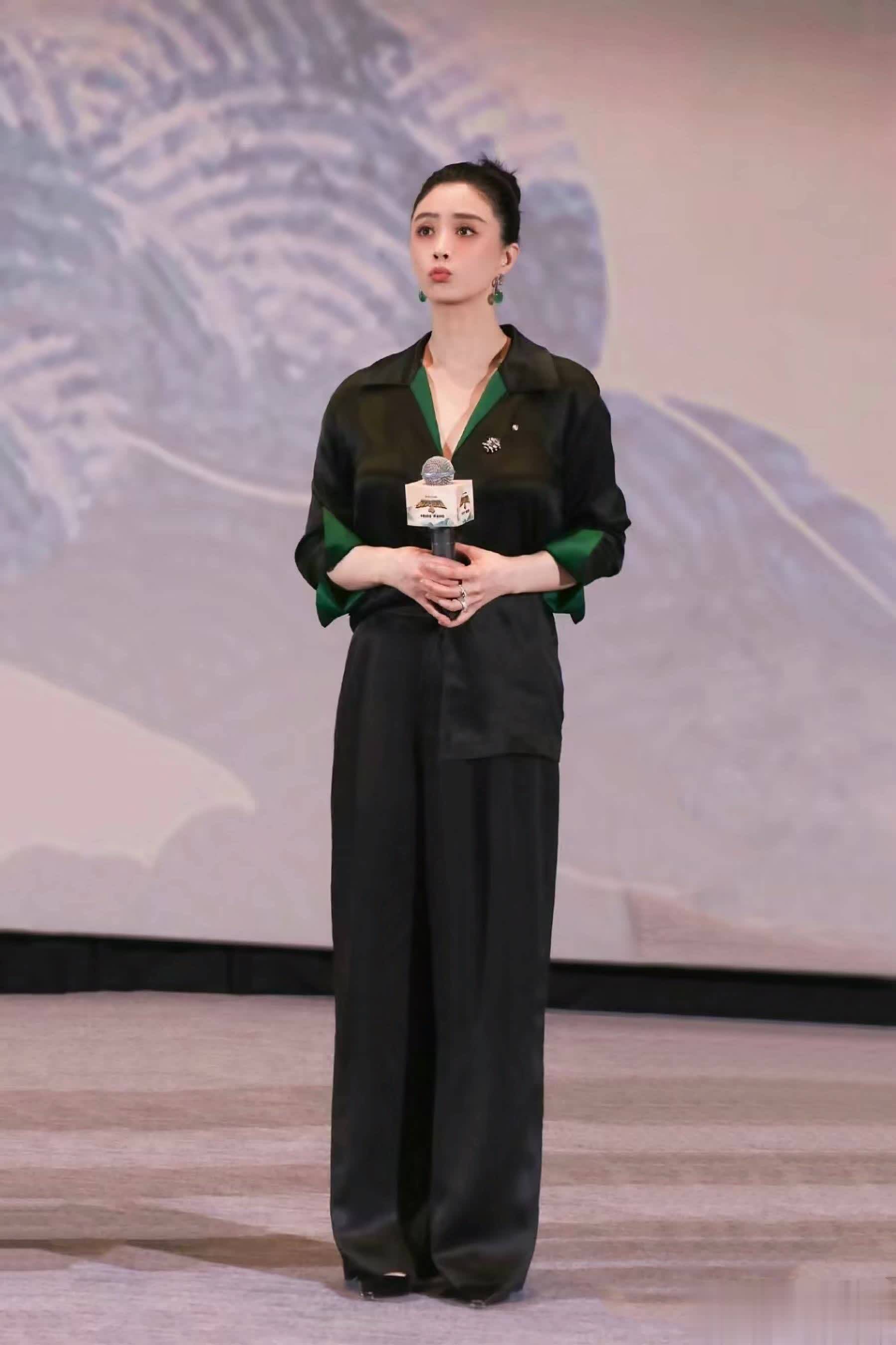 全身黑色搭配易显沉闷,适当增加亮色系可提升气质与时尚感。黑色衬衫拼接小面积墨绿色,高级感十足,搭配同色系翡翠耳环,时髦又高级。